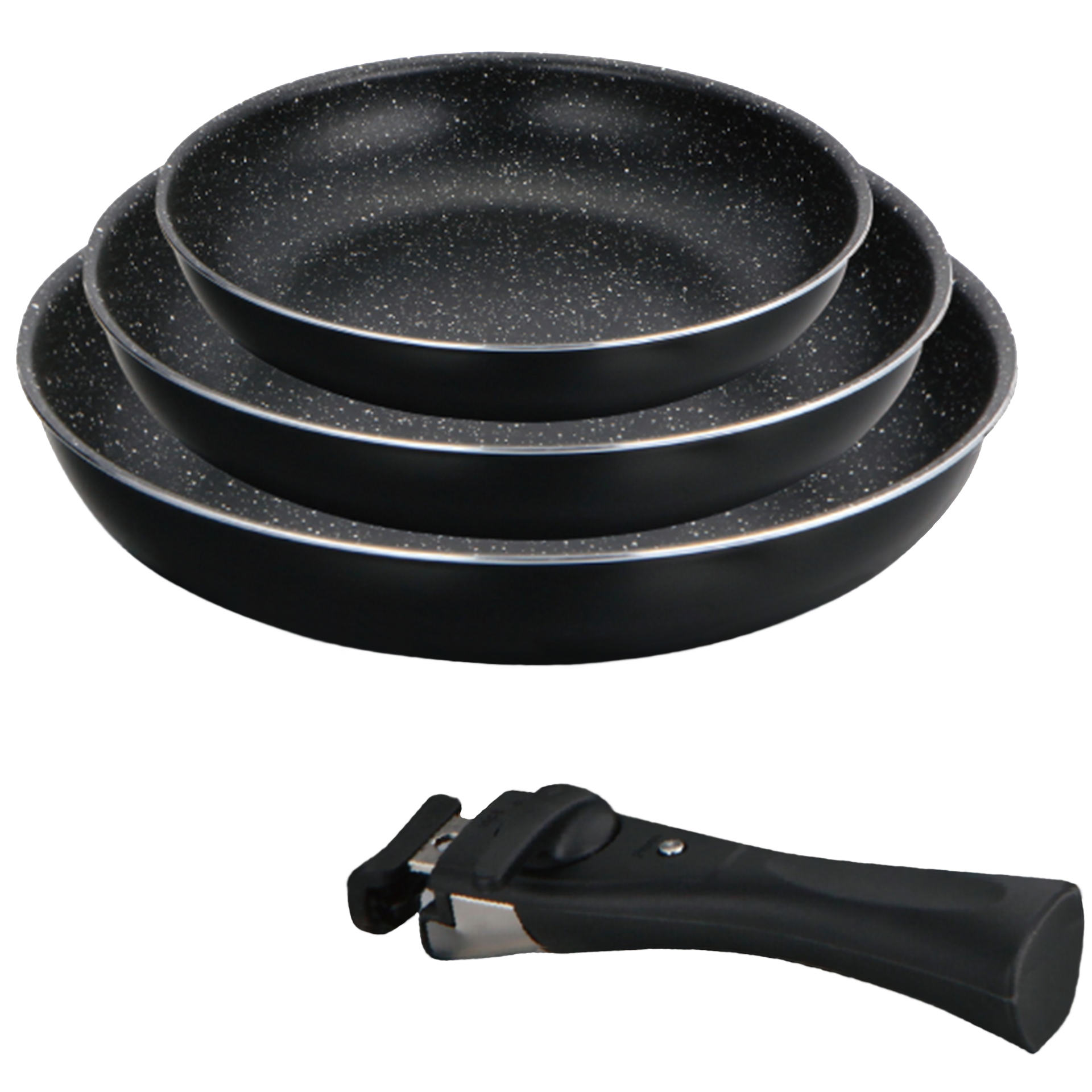 Découvrez le Set de 3 poêles Swiss ProLine avec poignée amovible, conçu pour simplifier votre cuisine tout en offrant une performance optimale sur tous types de feux, y compris l’induction.